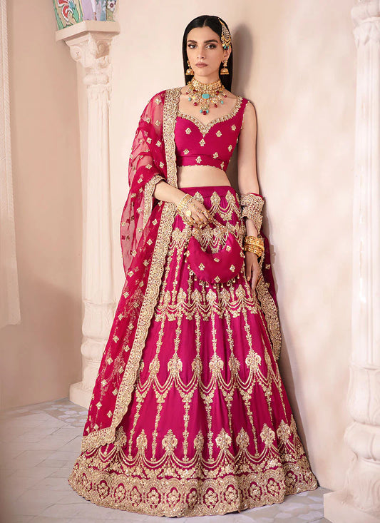 Product Details Nigarbano is our signature sindoori bridal set that comprises of silk lehnga choli...
